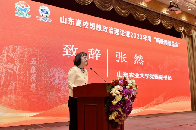 张然在致辞时对与会专家学者表示热烈欢迎,并介绍了学校办学情况和发展成就。她说,近年来,米乐mile体育官网认真贯彻落实习近平总书记在学校思想政治理论课教师座谈会上的重要讲话精神,把马克思主义学院作为重点学院、思想政治理论课作为重点课程加强建设,“大思政课”建设格局持续拓展。这次磨课总会的召开,必将为推动学校思政课教学改革创新注入新动力。学校将通过这一平台,更好地吸收借鉴和有效利用省内外马克思主义理论研究与思政课教育教学相关资源,培育一批有“生命力”“创造力”的思政课“萌新”示范课堂,锻造一批个体与团队同向同行的思政课教学示范团队,努力打造立足山东、面向全国的高校思政课创新品牌,助力全省思政课建设提质培优、增值赋能。