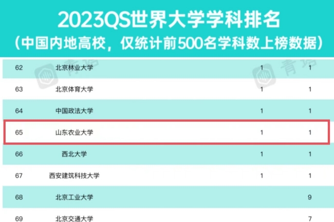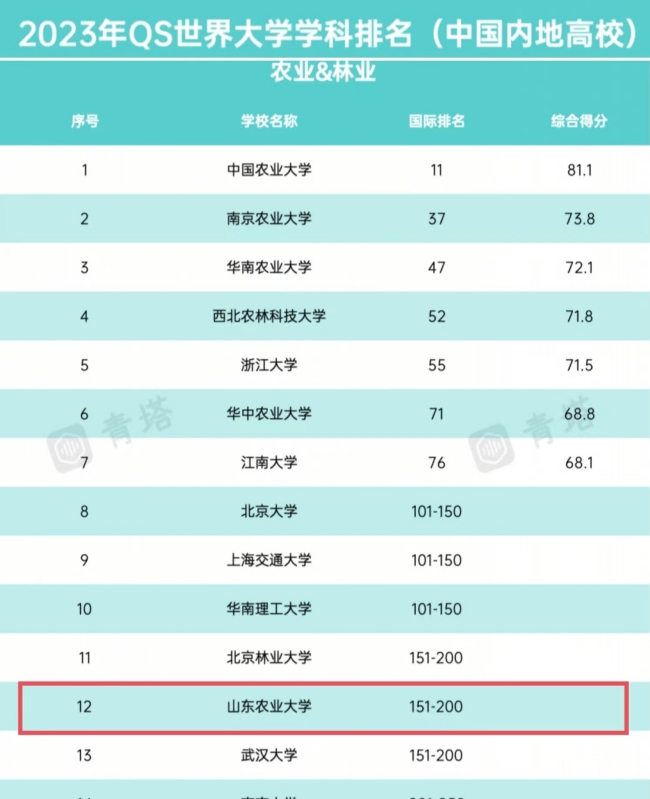 数据显示,米乐官网农业&林业学科与北京林业大学、武汉大学的农业&林业学科同属151-200排名区间。据统计,山东省高校中,中国海洋大学有3个学科进入全球前200名,山东大学有2个学科进入全球前200名。米乐官网农业&林业学科是山东省省属高校中,唯一一个进入全球200强(500强)的学科。