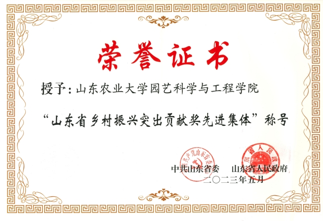5月22日至23日,全省乡村振兴齐鲁样板现场推进会议举行,会上宣读了省委、省政府《关于表彰山东省乡村振兴突出贡献奖先进集体和先进个人的通报》,米乐官网园艺科学与工程学院获评先进集体并受邀作为代表现场领奖。