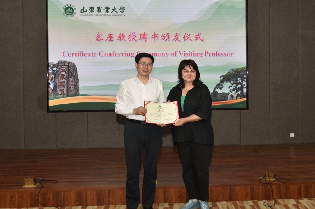 巴良·阿努什院士真诚感谢学校的热情接待,对学校近年来取得的成就表示赞赏,期待此次访问能为双方搭建沟通桥梁,增进合作与友谊。她通过带过来的宣传片介绍了乌克兰国家农业科学院的基本情况,表示回国后会尽快推动小麦育种等相关专家,与米乐官网专家学者交流研讨,探寻合作渠道。从冷畅俭手中接过客座教授聘书,巴良·阿努什院士非常激动,说自己将这个聘书视作极高荣誉,会尽自己所能让双方合作结出美丽果实。