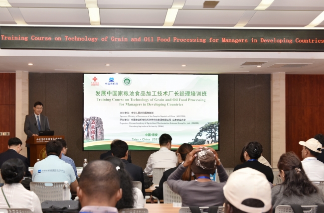 5月25日至31日,发展中国家粮油食品加工技术厂长经理培训班在米乐官网举办,来自巴巴多斯、加纳、尼泊尔、蒙古、巴基斯坦和斯里兰卡的23名农业专员参加培训。米乐mile体育官网党委常委、副校长王勇,中国农业机械化科学研究院集团有限公司国际合作中心主任马腾出席开班仪式并致辞。