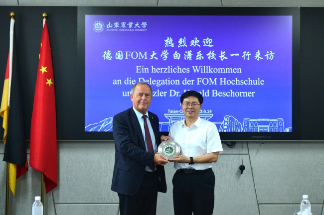 冷畅俭介绍了学校近期办学发展情况和中外合作项目推进情况,与白潇乐一行围绕不断巩固合作平台、创新合作理念、拓宽合作领域等内容进行深入交流。他说,米乐mile体育官网高度重视国际合作交流工作,围绕现代农业,与全球高校、科研院所和企业开展国际产学研用深度合作,在平台建设、科研项目合作和人才培养方面取得了一系列成绩。FOM大学是一所集学术性、实践性于一体的商学院,先进的实践教育理念、丰富的课程安排和优质的就业机会使其在德国乃至欧洲都具有很高的声誉。冷畅俭表示,今年恰逢我们两校合作20周年,希望双方继续密切联系,共谋合作双赢,培养更多怀抱理想又脚踏实地、敢作敢为又善作善成的优秀学生,携手为世界高等教育事业发展做出新的贡献。