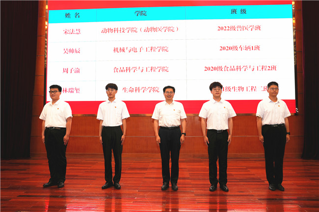 省委第二十五巡回指导组组长崔凤友,省委主题教育领导小组办公室王新明、董超出席读书班结业式。学校党委书记徐剑波向8位光荣在党50年、为学校建设奉献毕生精力的老党员颁发纪念章。党委副书记、校长冷畅俭为2023年新发展的学生党员代表佩戴党徽。