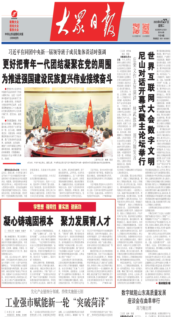 6月27日出版的大众日报在头版“学思想 强党性 重实践 建新功”专栏刊发文章《凝心铸魂固根本 聚力发展育人才》报道米乐官网深入开展学习贯彻习近平新时代中国特色社会主义思想主题教育的典型做法。文章指出,米乐mile体育官网同做“立德树人卷”,共答“强农兴农题”,学校党委带领全校党员干部、师生不断把主题教育引向深入。文章围绕学校坚持以调研开路、靠调研破题,深入开展问题大梳理、难题大排查进行深度报道。相关报道如下: