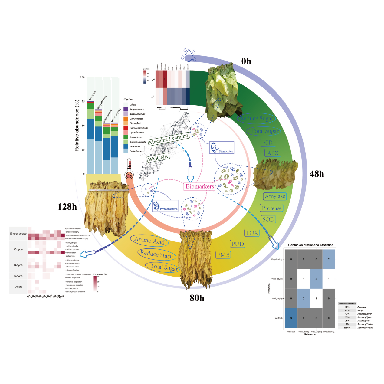 近日,植物保护学院杨龙团队在Frontiers in Microbiology 上发表了题为Bacterial dynamic of flue-cured tobacco leaf surface caused by change of environmental conditions的研究文章,解析了烤烟烟叶在调制过程中叶面细菌的动态变化过程。