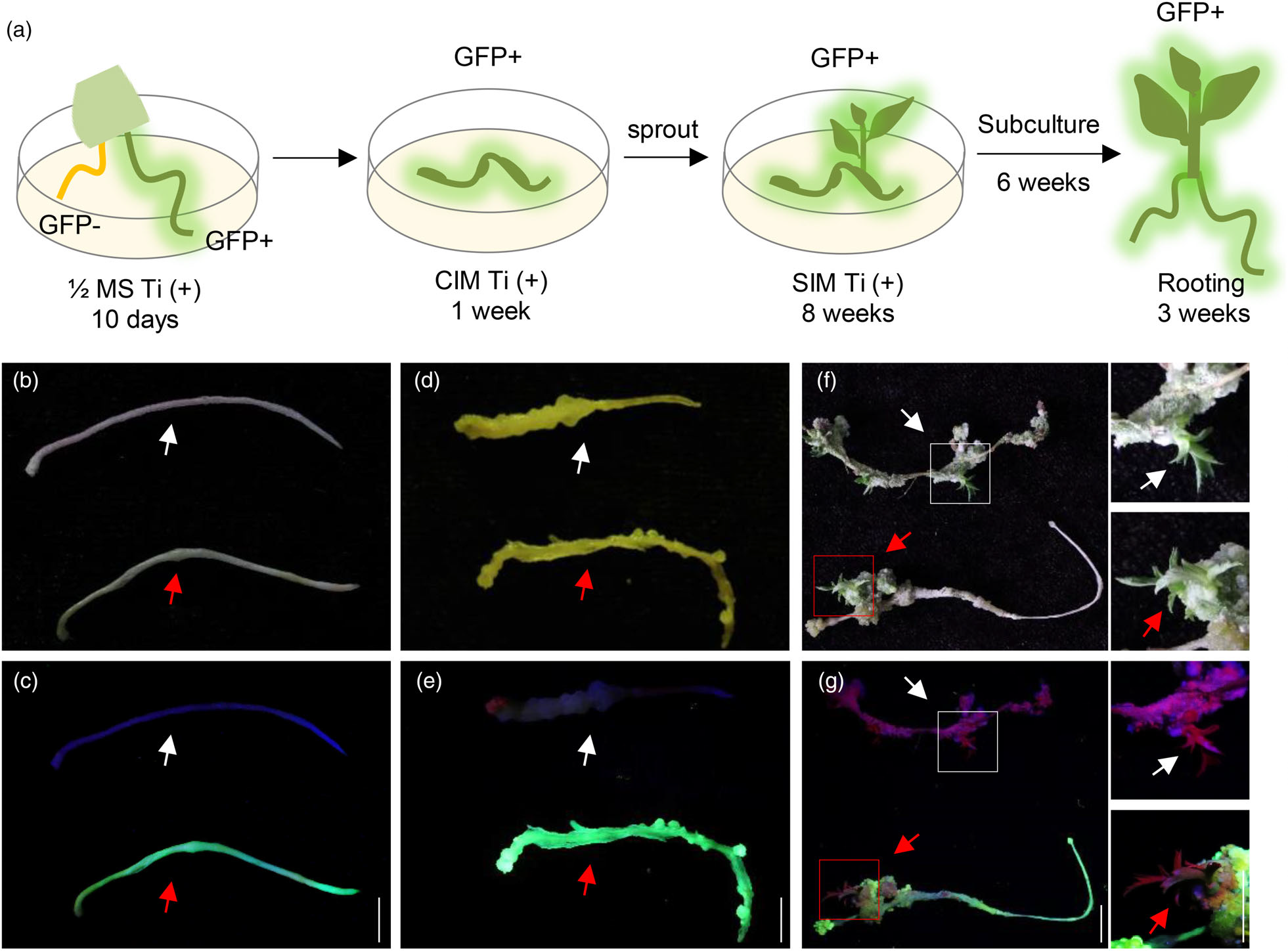 近日,该团队在Plant Biotechnology Journal在线发表研究论文“An Efficient Genetic Transformation System Mediated by Rhizobium rhizogenesin Fruit Trees Based on the Transgenic Hairy Root to Shoot Conversion”,报道了破解果树遗传转化的全新方法——RBS转化技术。
