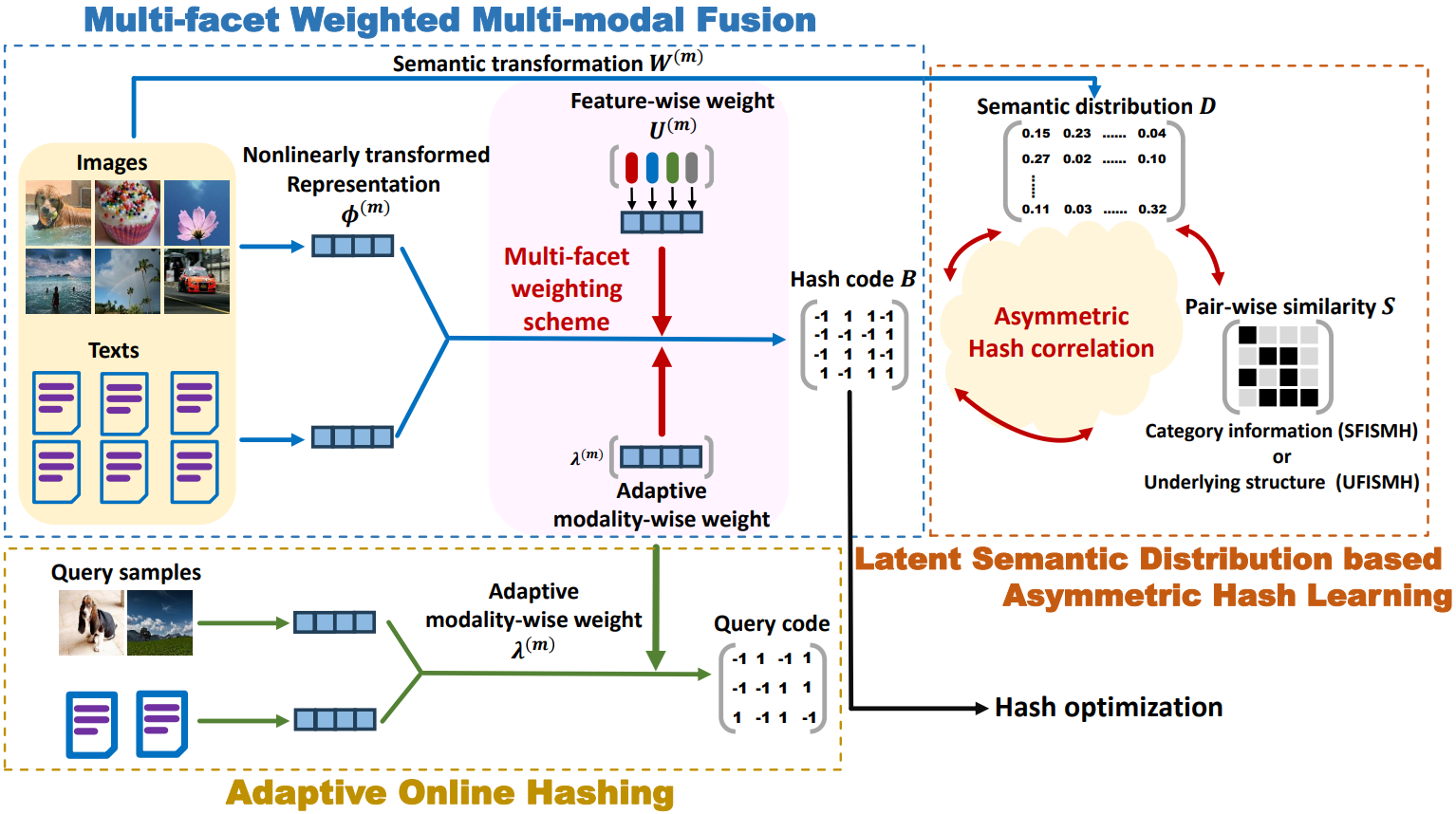 近日,信息科学与工程学院张亮教授农业智能学习与计算团队芦旭博士在《IEEE Transactions on Multimedia》在线发表了题为“Multi-Facet Weighted Asymmetric Multi-Modal Hashing Based on Latent Semantic Distribution”的研究论文。