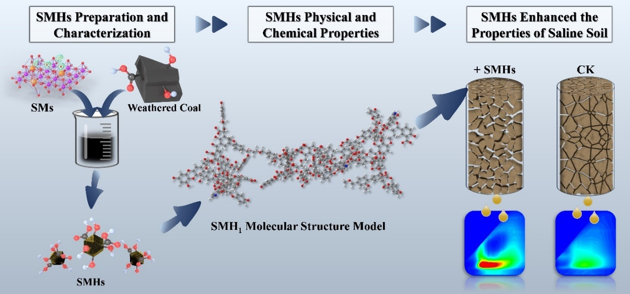 本研究成功制备了一种新型选择性改性剂(SMs),该改性剂通过将钠和铜共掺杂到Birnessite晶格中,实现了对腐植酸的高效提取和靶向活化。研究表明,改性腐植酸则表现出酸性官能团的增加、分子量的降低以及脂肪族碳的转化。明确了腐植酸通过优化土壤团聚体组成、促进盐渍土盐分淋洗这两个关键机制,实现了对盐渍化土壤的有效改良。这项研究不仅强调了有针对性地对腐植酸进行改性的重要性,更证明了这些改性剂在提升土壤质量、推动生态农业及环境修复方面的巨大潜力。