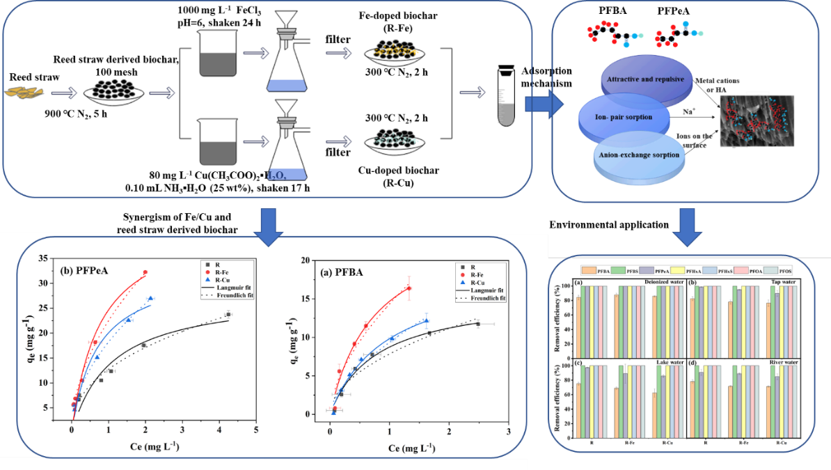 近日,资源与环境学院李成亮教授团队在Science of the Total Environment在线发表了题为“Efficient adsorption of short-chain perfluoroalkyl substances by pristine and Fe/Cu-loaded reed straw biochars”的研究论文。博士后刘娜为该论文的第一作者,李成亮教授为该论文的通讯作者,米乐mile体育官网为论文唯一完成单位。