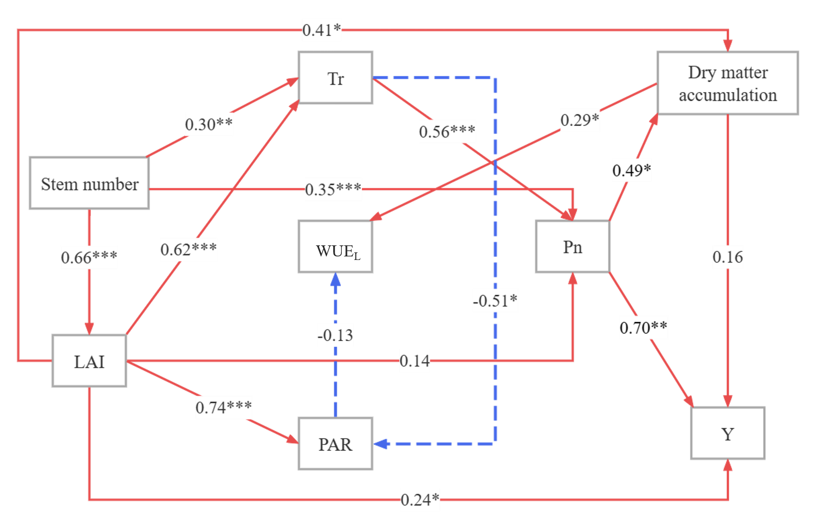 研究人员以华北平原冬小麦为研究对象,对2020–2022生长季的田间试验数据进行分析,揭示了不同秸秆还田方式和灌溉制度耦合对冬小麦生理生长和产量的影响。田间试验表明,秸秆翻埋还田与灌溉相结合的方式显著提升了冬小麦单茎数、叶面积指数及净光合速率,相较于秸秆覆盖还田结合灌溉的处理,其效果更为突出。在相同秸秆还田处理下,灌水提高了秸秆还田效果,冬小麦产量和干物质积累量随灌水量的增加而增加。研究结果表明,在秸秆翻埋还田结合拔节期、抽穗期各灌溉60 mm处理下,冬小麦产量最高。此外,结构方程模型(SEM)分析进一步揭示了叶面积指数和光合速率对冬小麦产量形成具有显著积极作用。