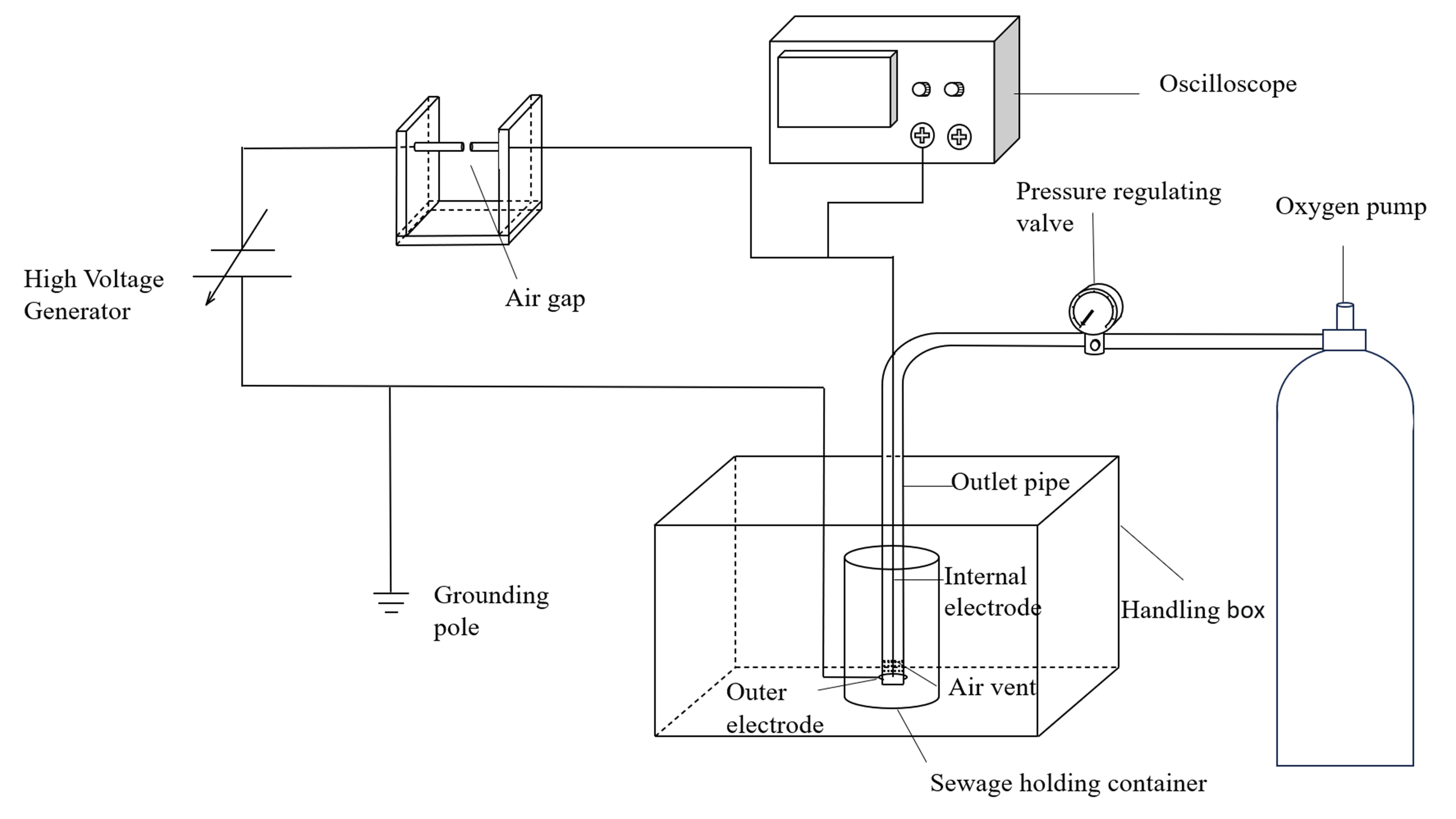 等离子体处理污水的反应机理是在特定反应环境中,通过高压电源向水中或水面注入能量,从而在电极和接地极之间形成放电通道。在此过程中,电流导致系统温度急剧上升,电子获得巨大能量并与水分子发生解离。此外,低温等离子体主要由高能电子、正负离子、强氧化性自由基、激发态分子和原子等组成。在放电处理过程中,通过电化学反应,活性物质能诱导污染物中的不饱和键断裂和开环,逐步将废水中的大分子物质分解为小分子,显著提升了难降解物质的可生化性。同时,等离子体处理污水还可以通过杀灭细菌、病毒等微生物来达到消毒的效果。因此,等离子体处理污水是一种高效、环保的污水处理方法。基于等离子体技术的优势,其在水处理方面的应用得到越来越广泛地研究。本文研究了一种简单的气泡放电等离子体处理氨氮废水的方法,通过模拟废水样品,解析了pH、电压、脉冲频率和反应时间对废水处理的影响。用紫外分光光度法测定氨氮、总氮和副产物的浓度,结果表明,NH3-N更容易被碱性环境中生成的活性物质氧化。