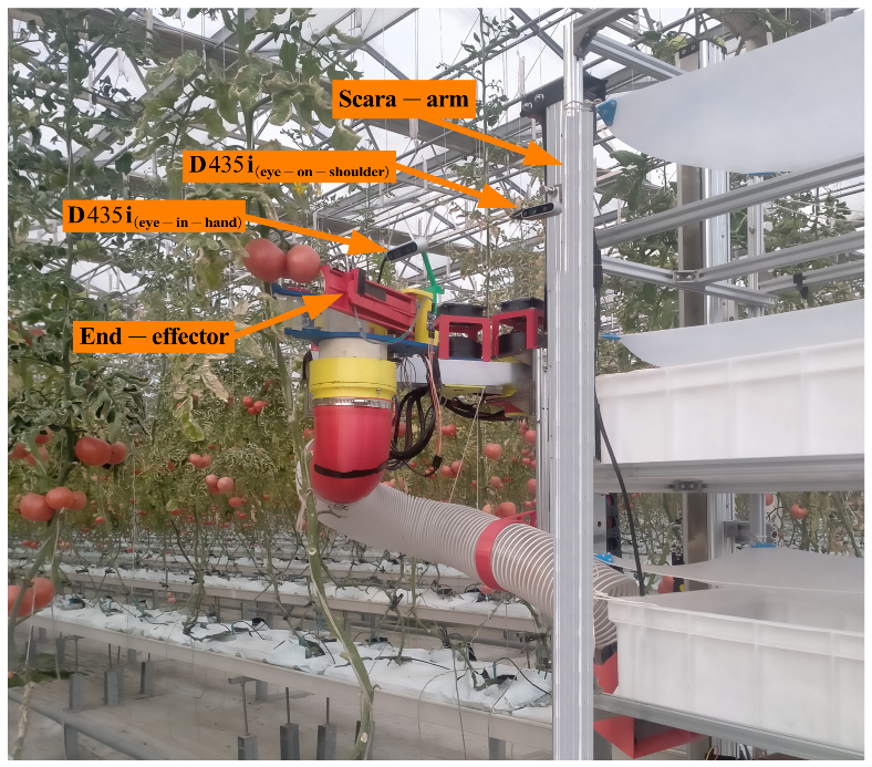 作为世界上最重要的水果和蔬菜之一,番茄在全球蔬菜贸易市场中占有重要地位,每年都需要大量劳动力进行采收作业。然而,随着人口老龄化,劳动力短缺现象逐渐加剧,导致在采收季节难以招募到足够的工人。因此,亟需开发具有智能感知和选择性收获能力的采摘机器人,以解决收获季节劳动力不足的问题,降低收获成本,提高收获效率。对于采摘机器人而言,高效、稳健和高成功率的抓取策略包括最佳采摘姿势和最佳采摘序列。然而,现有的这些采摘姿态估计方法和采摘序列规划方法并不能直接用于大果丛生番茄的采摘,因为使用这些方法做出决策的采摘机器人对特定环境下采摘任务的鲁棒性较差,它们难以在丛生、无序和复杂的环境中自动确定采摘果实目标。特别是对于不同类型和采收方式的番茄植株,其生长状态具有不确定性,空间相对位置和空间姿态也不尽相同。