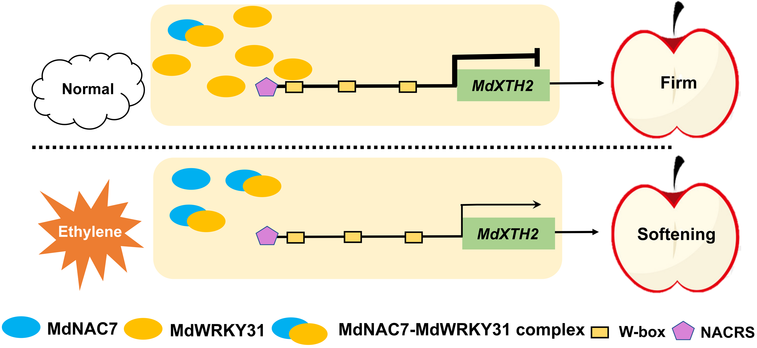今日,米乐mile体育官网园艺科学与工程学院苹果果实品质生物学与营养健康团队在Plant Biotechnology Journal期刊上发表了题为“MdWRKY31-MdNAC7 regulatory network: orchestrating fruit softening by modulating cell wall-modifying enzyme MdXTH2 in response to ethylene signalling”(https://doi.org/10.1111/pbi.14445)的研究论文,揭示了乙烯调控苹果果实软化的分子机制。