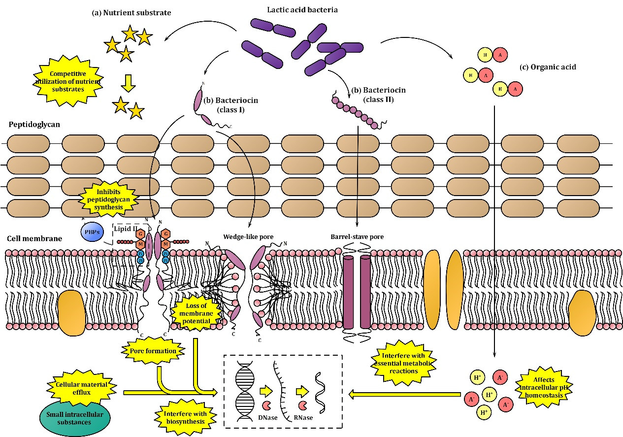图1.乳酸菌对单增李斯特菌的主要抑菌机制