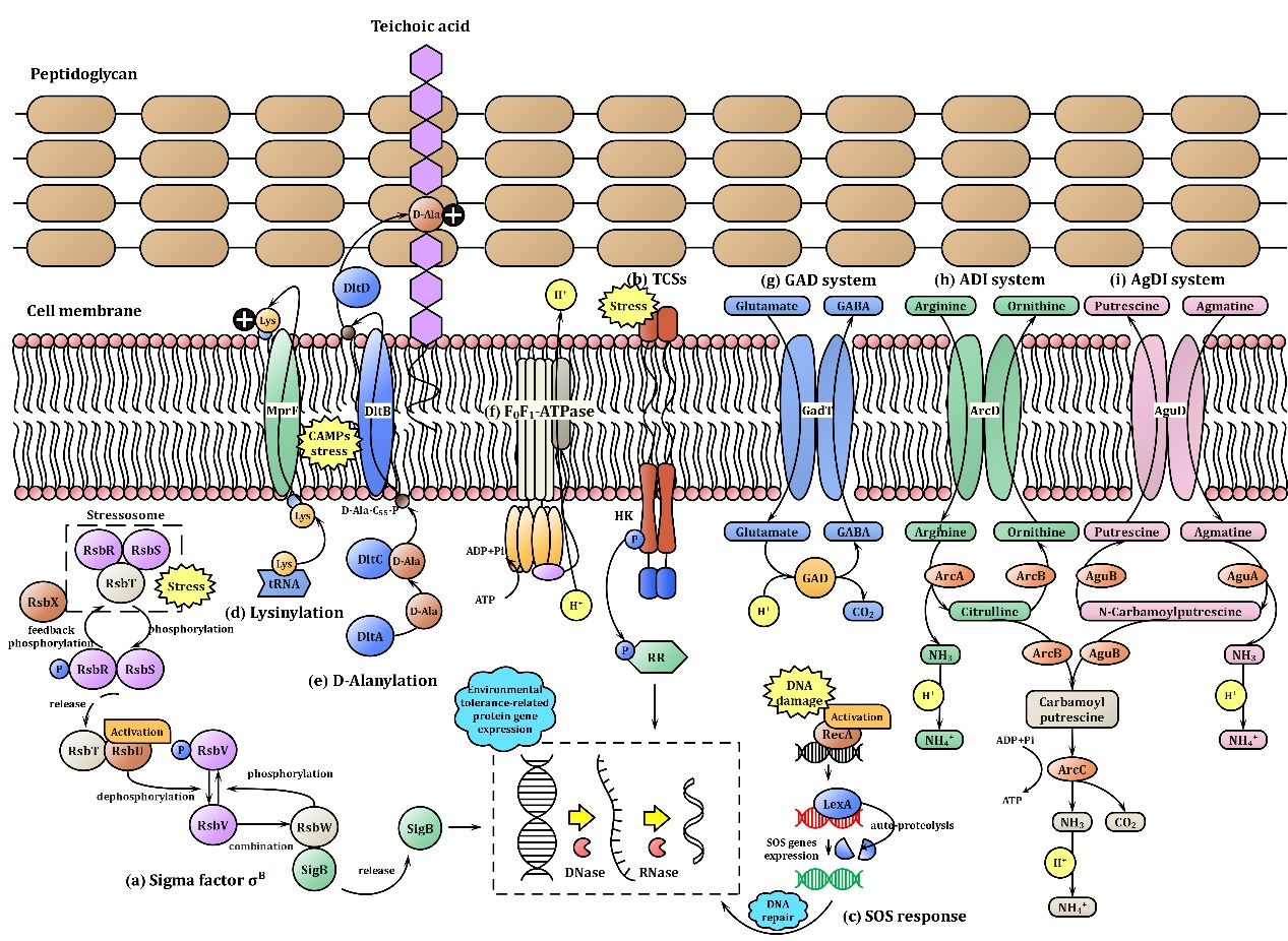 图2.单增李斯特菌对酸和细菌素耐受的主要机制