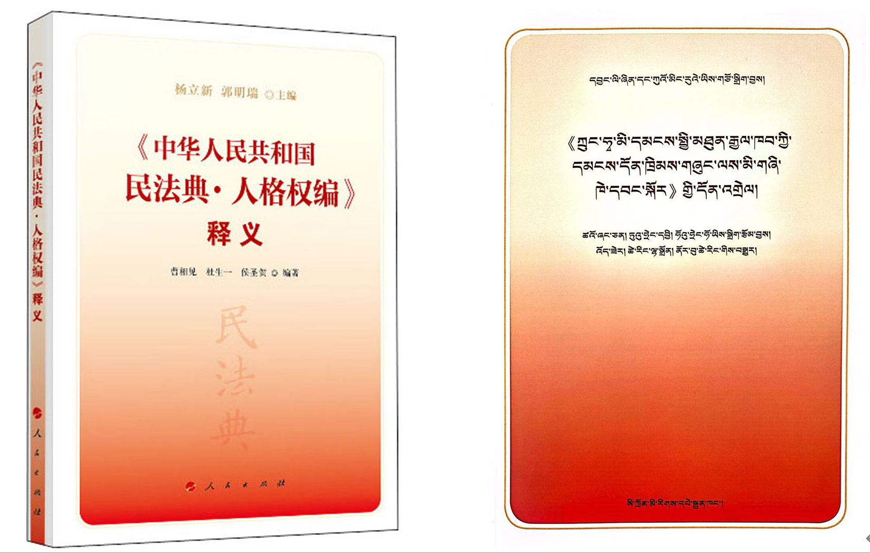 近日,公共管理学院教师杜生一、侯圣贺与吉林大学法学院曹相见教授共同编著著作《<中华人民共和国民法典·人格权编>释义》由四川民族出版社经人民出版社授权后译为藏汉对照版出版发行。