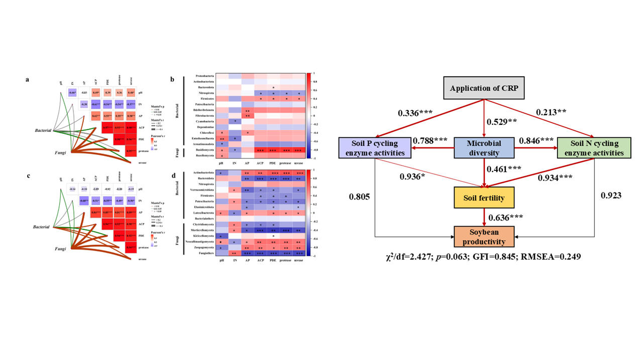 近日,资源与环境学院李成亮教授团队在Field Crops Research发表了题为“Controlled-release phosphate fertilizer improves soil fertility and soybean productivity by regulating soil microbial diversity and composition and increasing enzyme activities”的研究论文。曲兆鸣副教授为论文第一作者,李成亮教授为论文通讯作者,米乐mile体育官网为论文第一完成单位。
