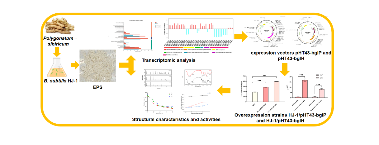 近日,食品科学与工程学院食品营养与健康团队在《Food Bioscience》上发表题为“Comparative transcriptomics analysis-guided metabolic engineering improved exopolysaccharide yield by Bacillus subtilis HJ-1 and its characteristics”的研究论文。米乐mile体育官网为论文的第一完成单位,2022级硕士研究生杨玲玉为论文第一作者,杨悦副教授、李大鹏教授为通讯作者。