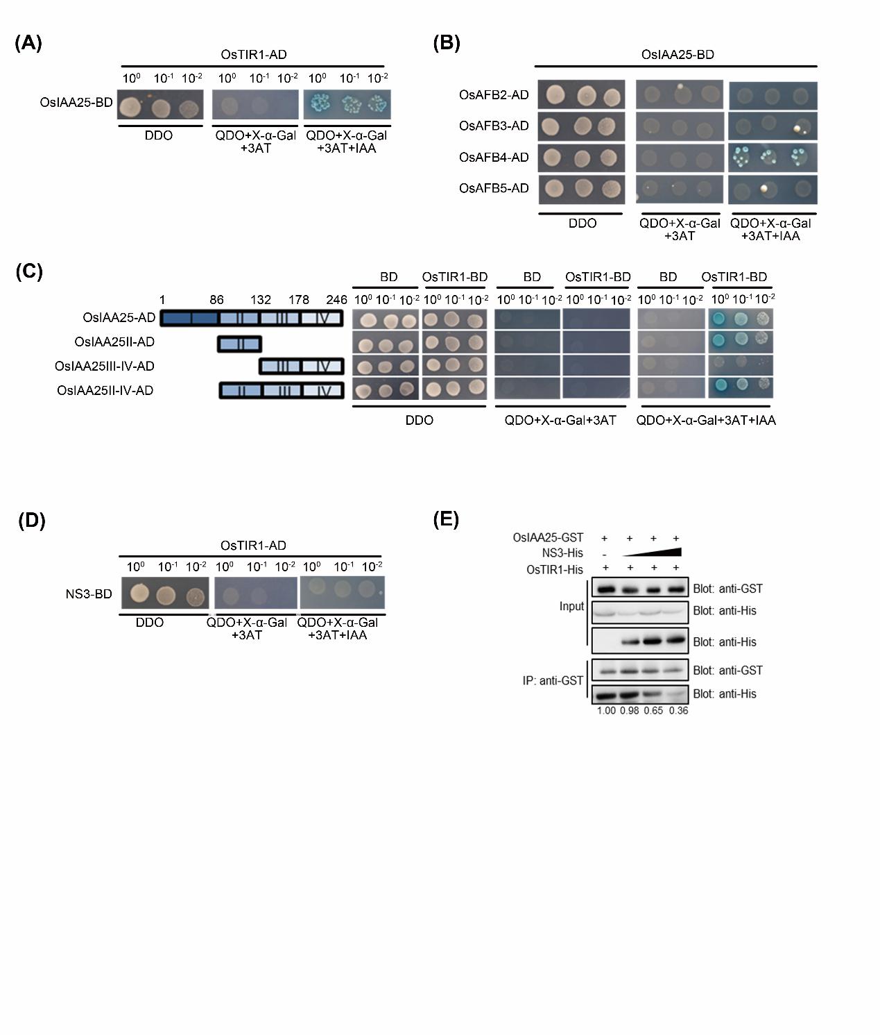 图2 NS3蛋白通过抑制OsIAA25/OsTIR1相互作用稳定OsIAA25