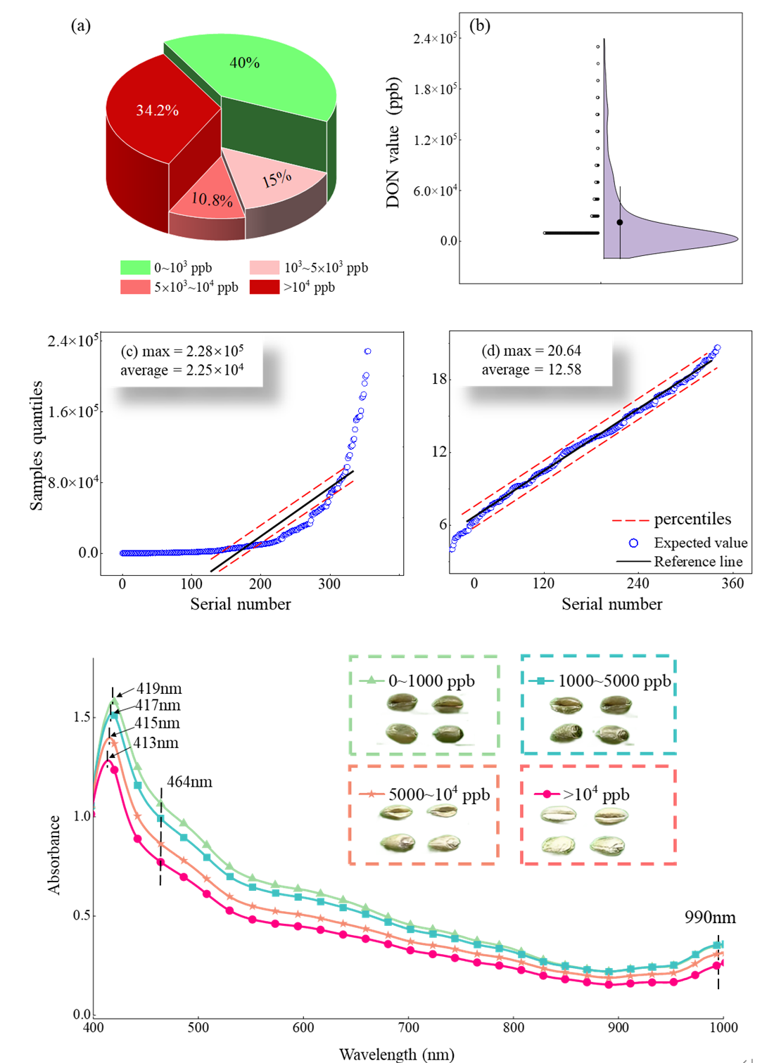 图1 赤霉菌侵染小麦籽粒DON毒素统计分析及光谱解析